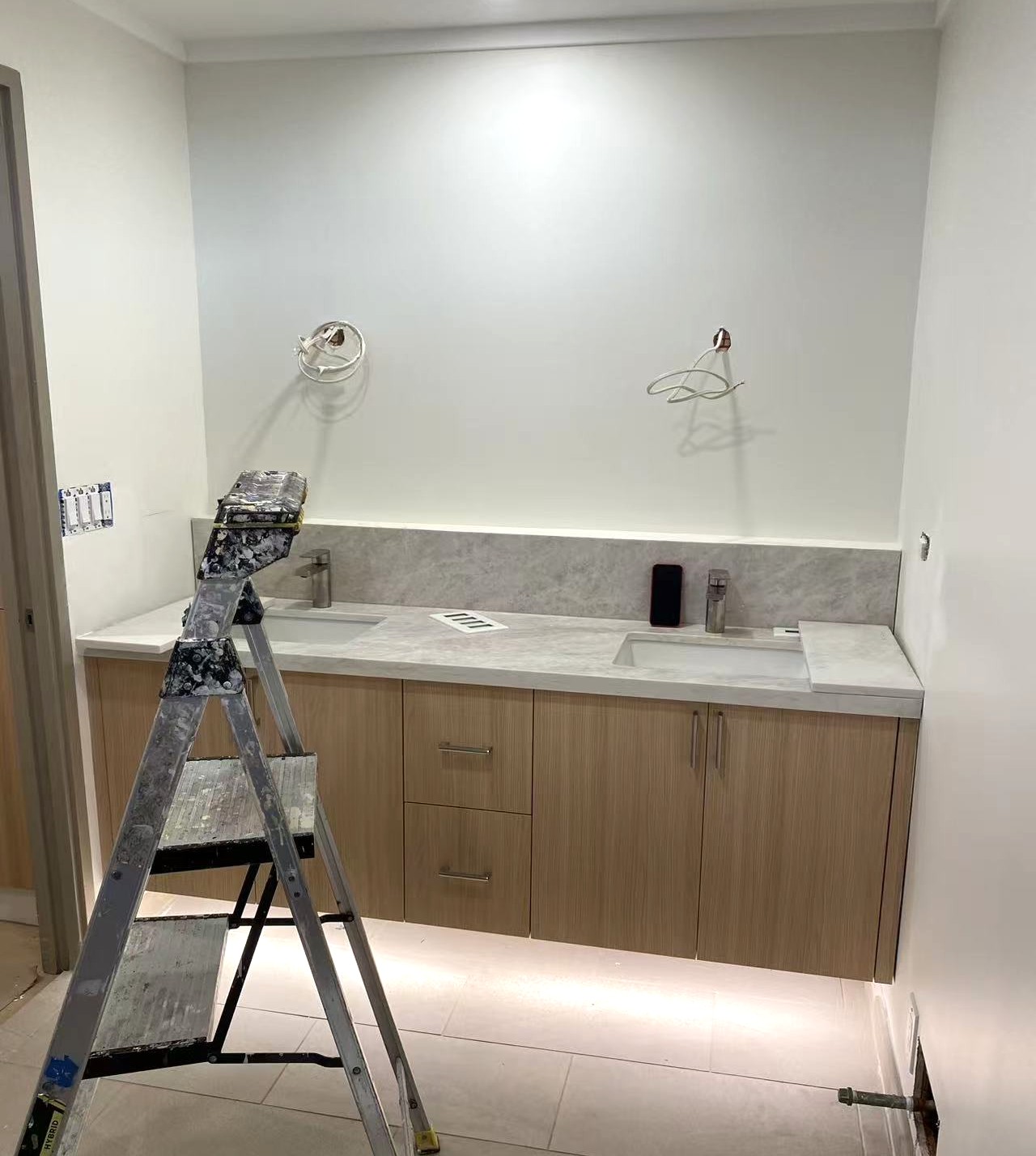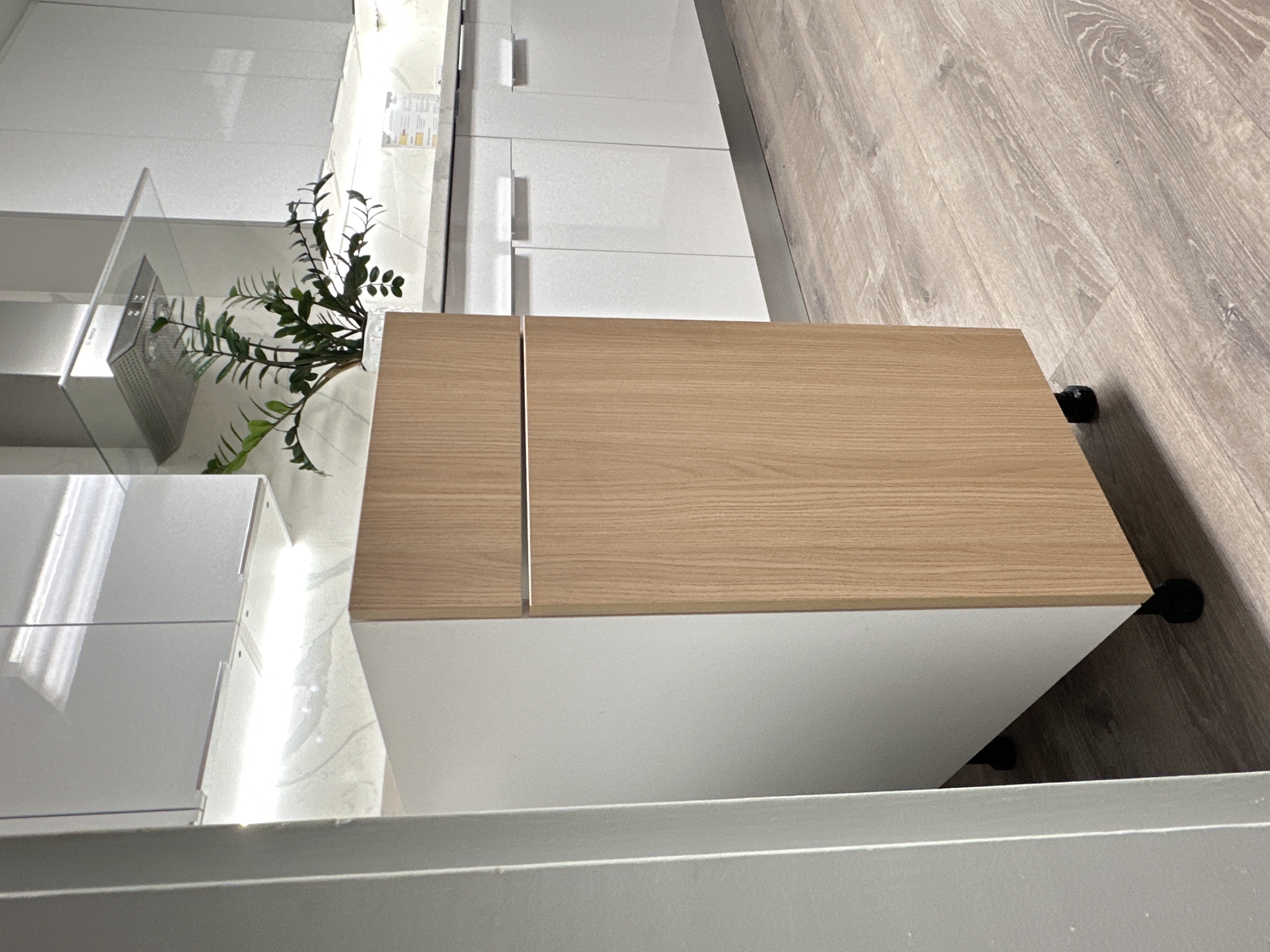Available locally now, Frameless White Oak Cabinetry. Available in a wide-range of kitchen and vanity sizes. Features top of the line 3/4" plywood box construction, PVC-laminate doors, standard soft-close hardware, and metal drawer sides.
